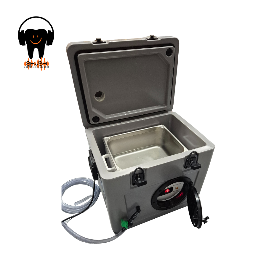 Noisy units are only very annoying to staff and patients but they may be causing hearing damage during their cycles. Frequencies from ultrasonic cleaners have a detrimental effect on hearing-for the very same reason they clean things so well. You may not even be able to hear the frequencies that are doing the damage. The Shushh acoustic enclosure is an excellent, cost effective solution for noisey units especially for cheaper, ultrasonic baths or those with smaller practices where space is more confined.
